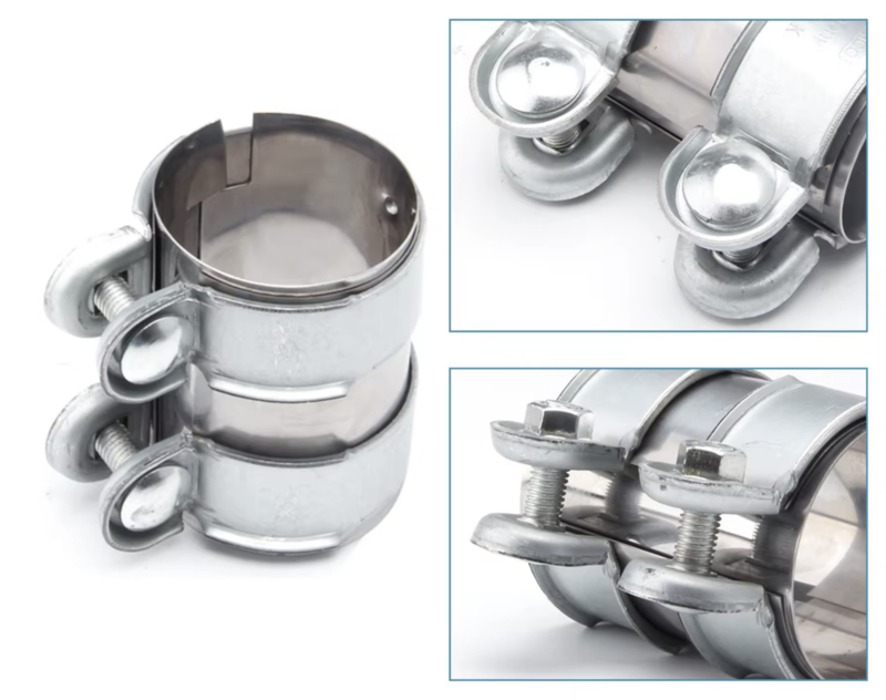 Deze worden gebruikt 2 uitlaatdelen van dezelfde diamater te klemmen. Het koppelstuk is eenvoudig vast te draaien met behulp van de klemmen dankzij de speciale geharde bout van 10mm. Dit koppelstuk maakt een gas dichte verbinding.