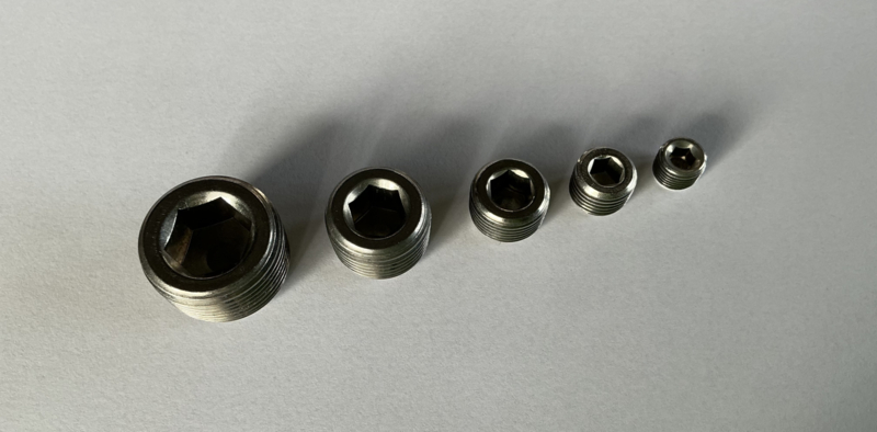 Div. Maten afstop plugs npt 1/8 , 1/4 , 3/8 , 1/2 , 3/4.