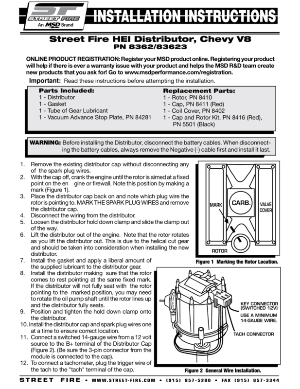 Artikelnummer: Msd-8362 OverzichtDistributor, Street Fire HEI, Magnetic Pickup, Vacuum, Mechanical Advance, Chevy, Big/Small Block, Each